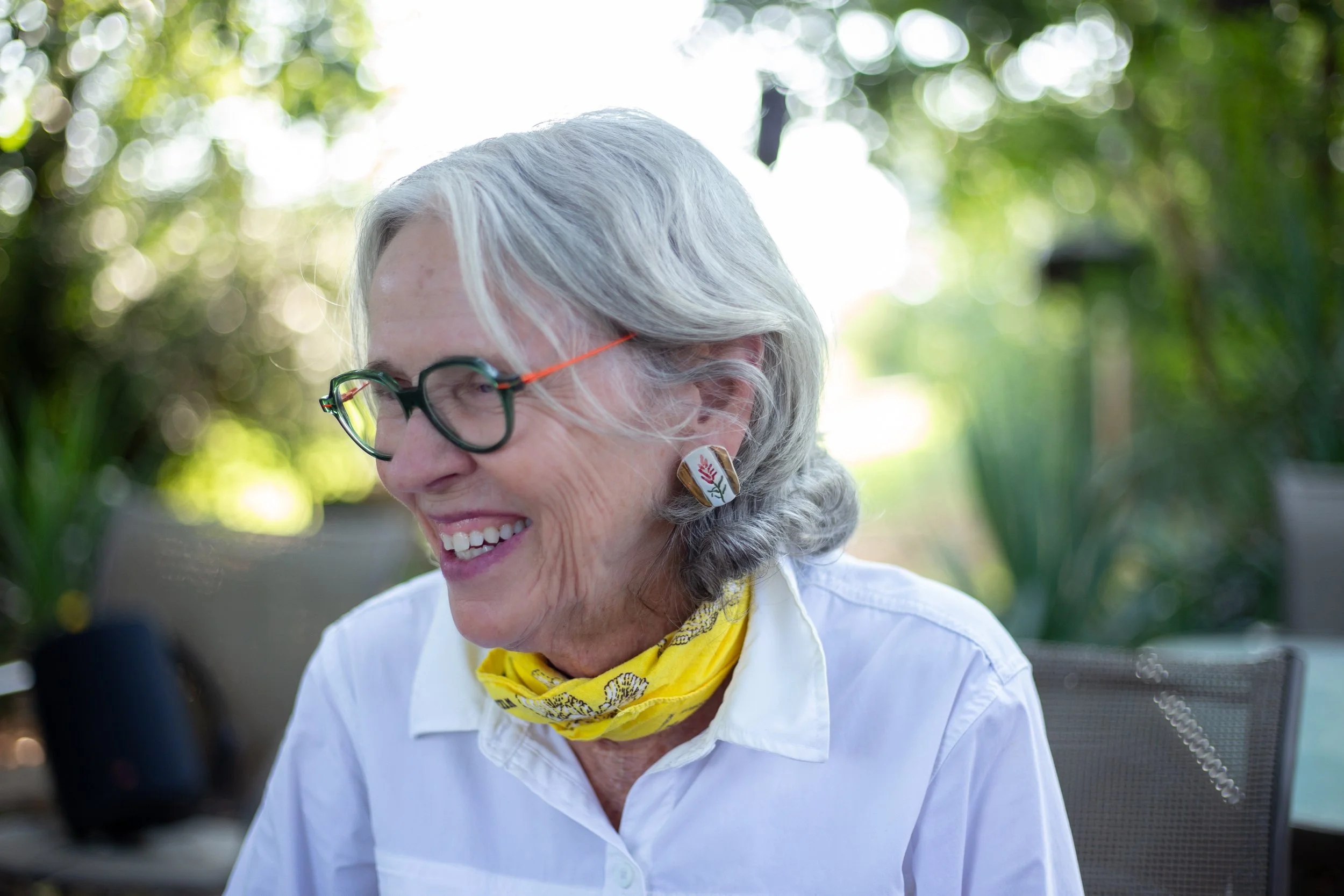 I am told my grandma sang through her 9-5, and that she loved irises. My dad names his wind chimes after people he loves, and when they ring, he smiles. My sister and him can harmonize their whistles like birds. This line is inspired by the sounds, love, and work my grandma passed down and braided with the sweet parts of nature everywhere.