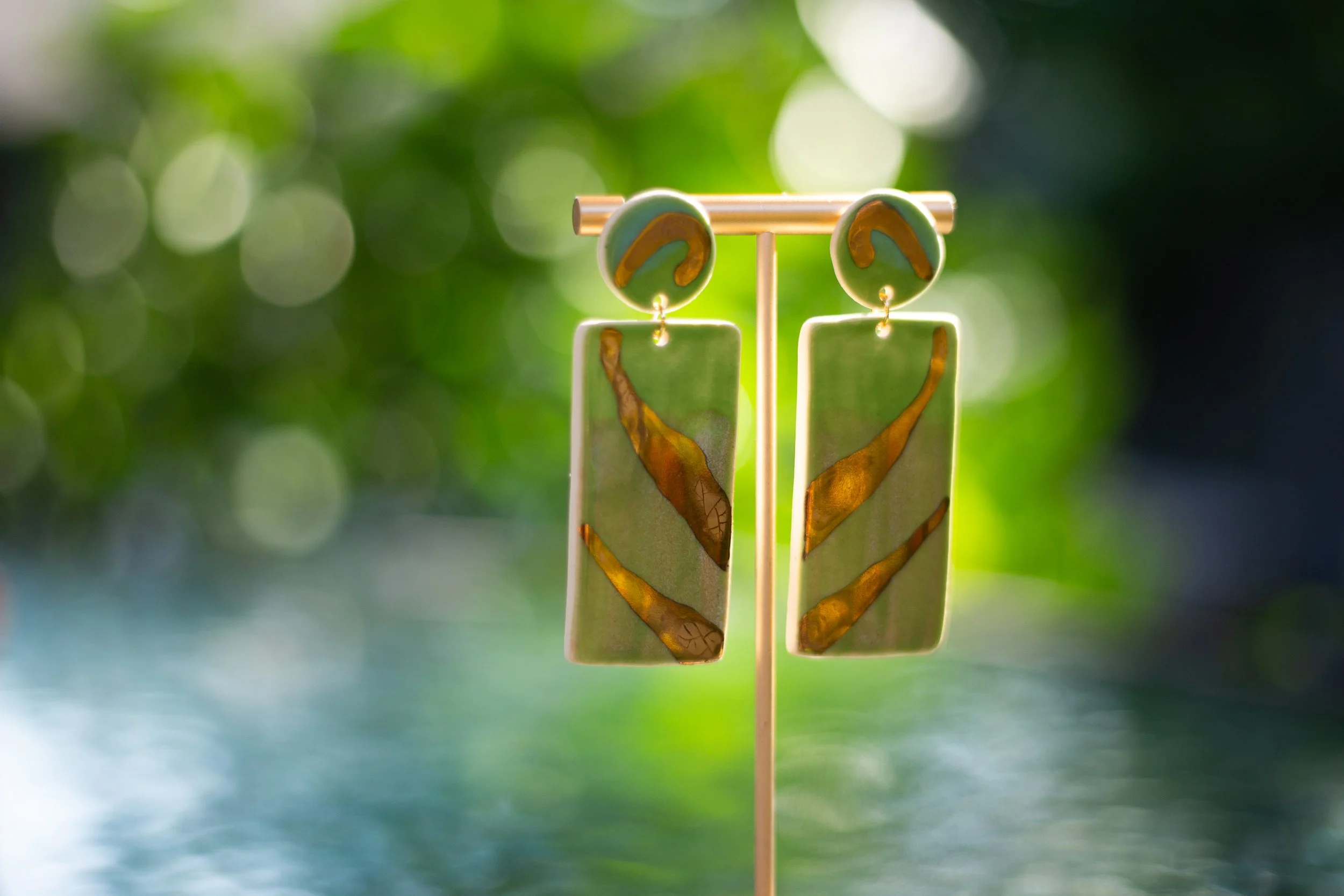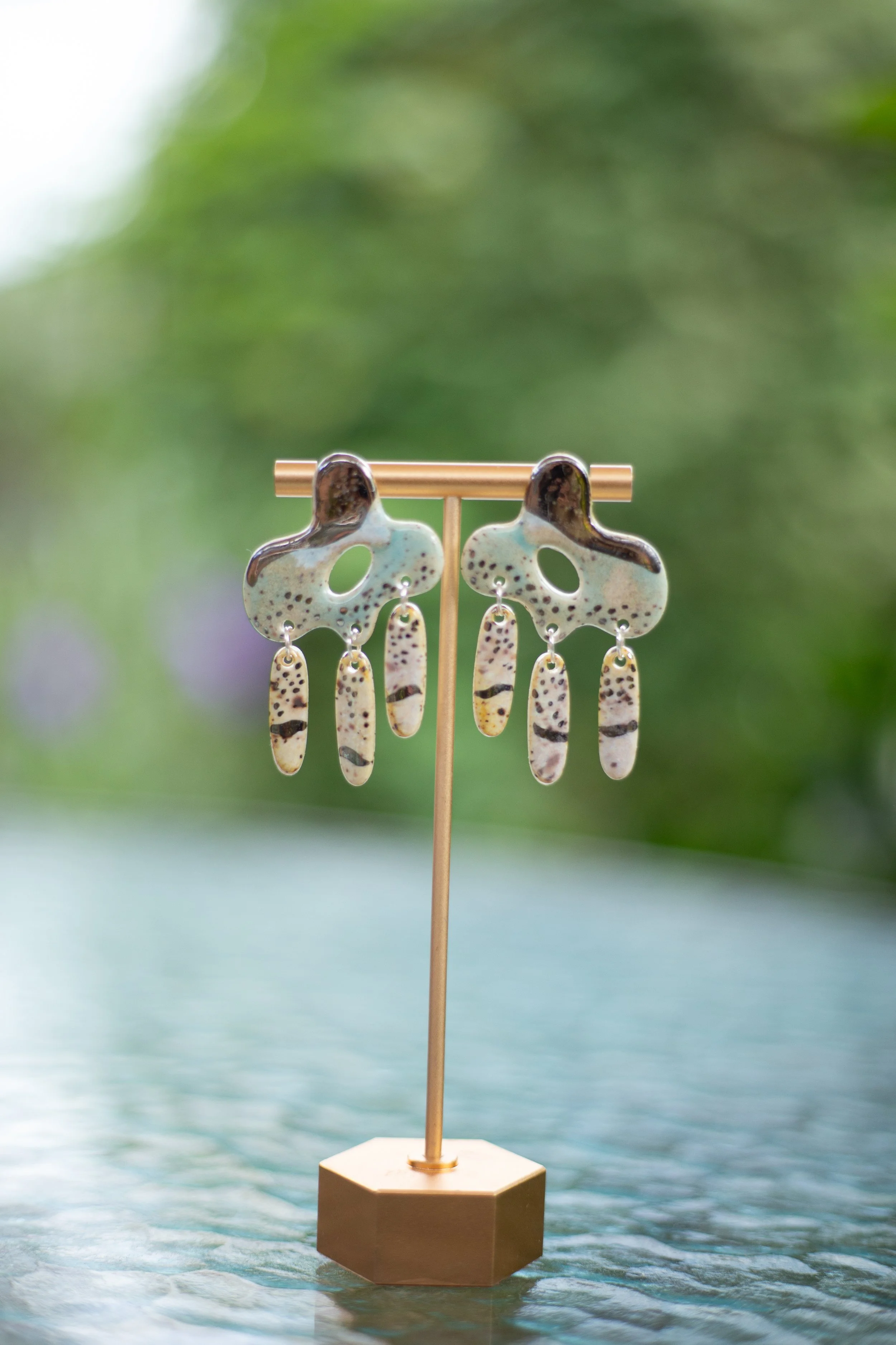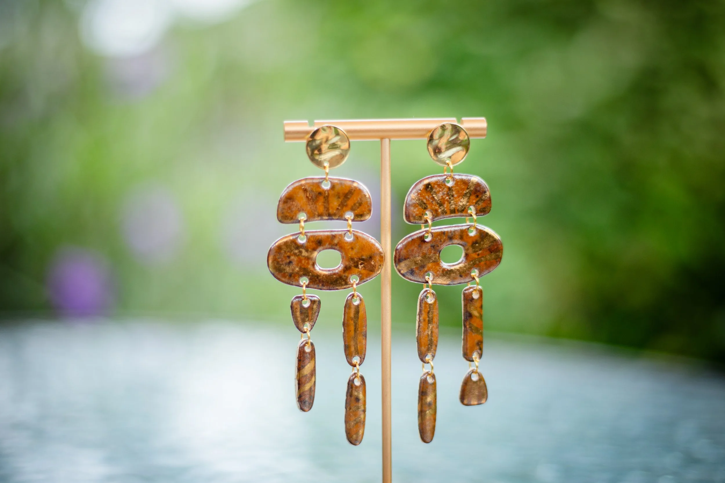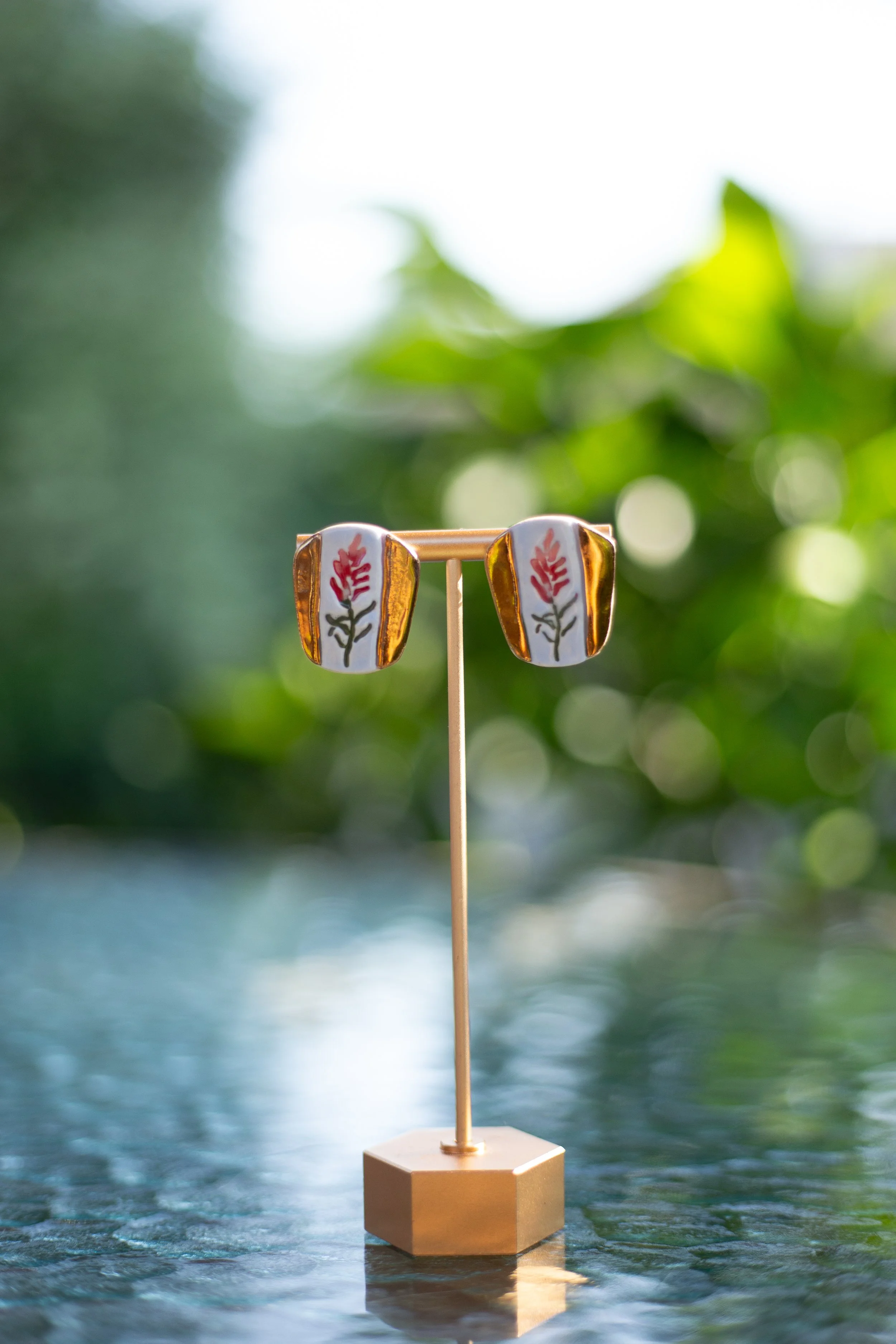 All Shop Neola pieces are handmade ceramic and detailed with luster and 22-karat gold. Each piece uses multiple glazes to create a colorful piece of art for your ears. All pieces undergo many firings in order to complete a complex and charming look that embodies both nature and beauty.
