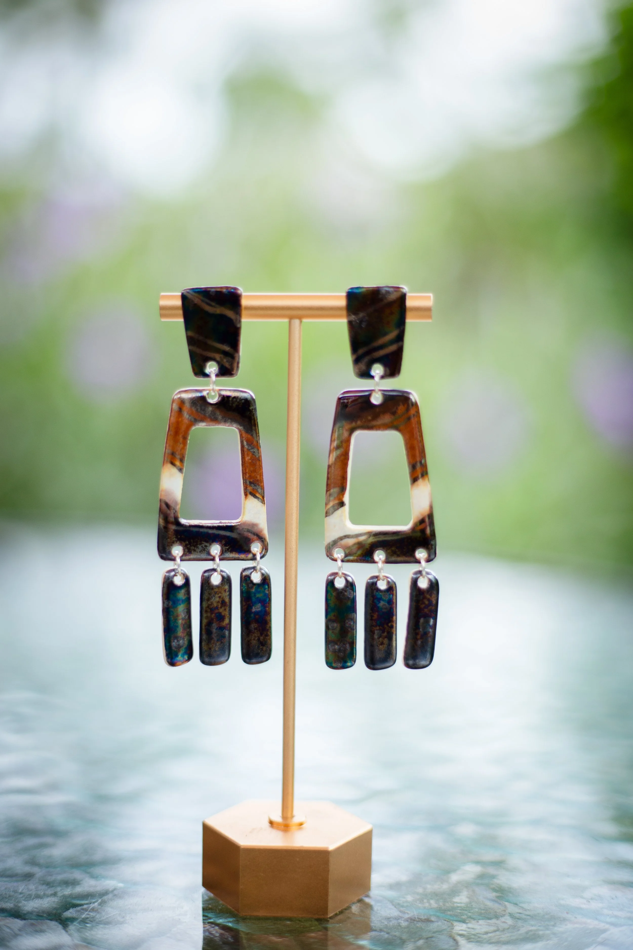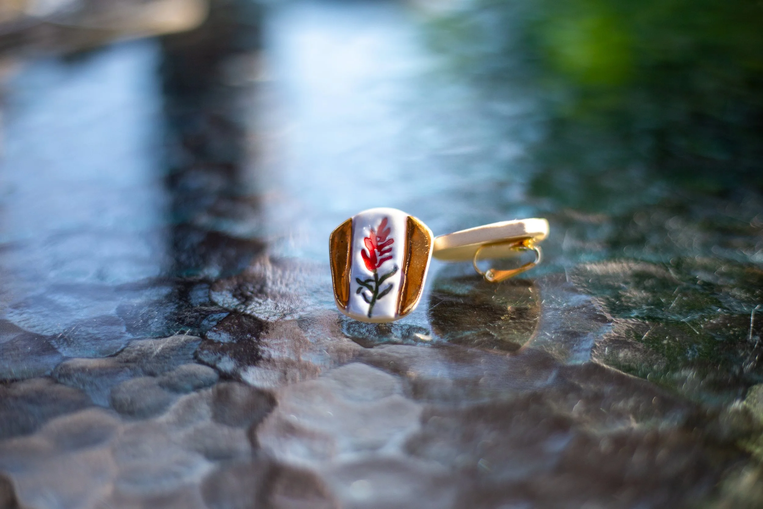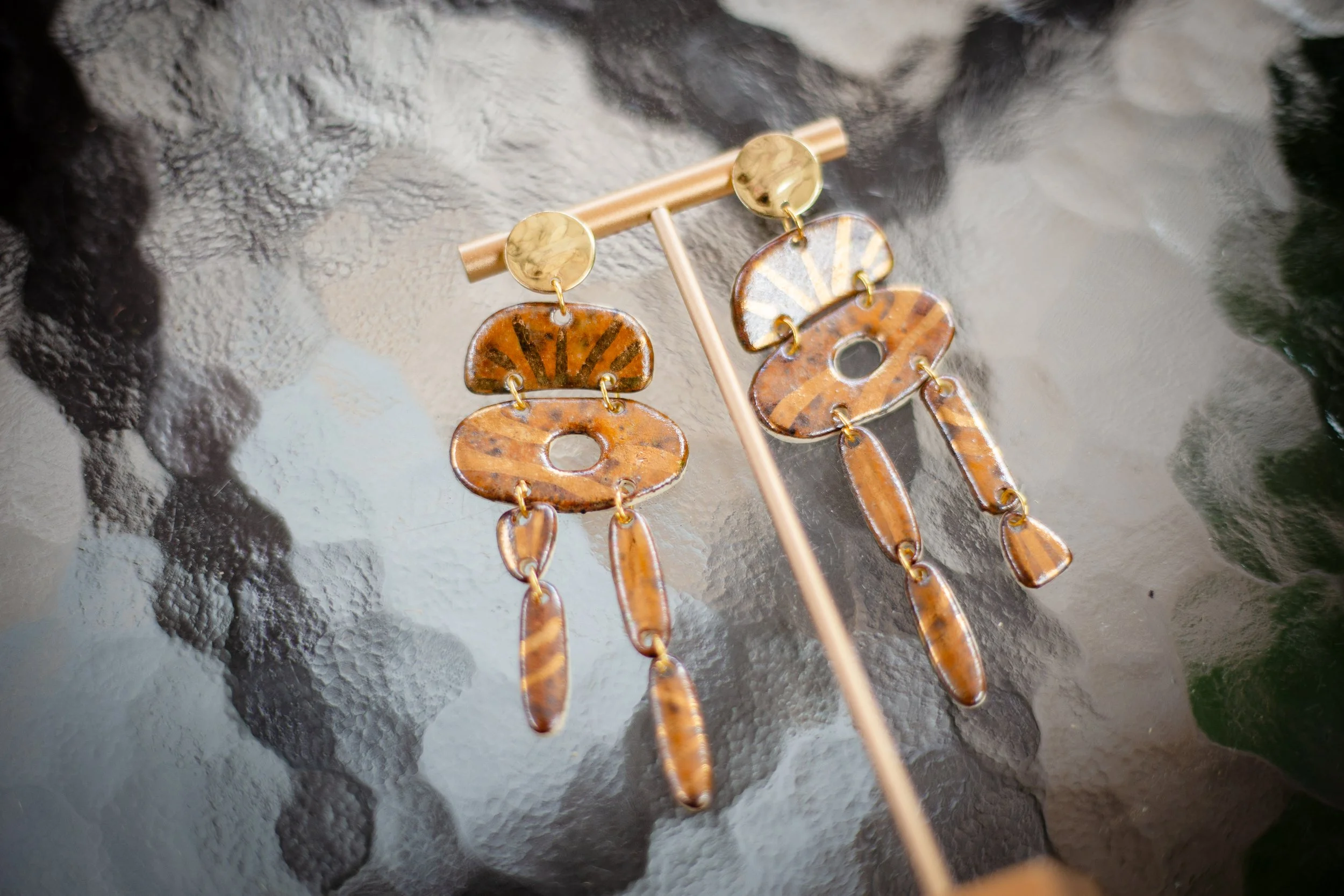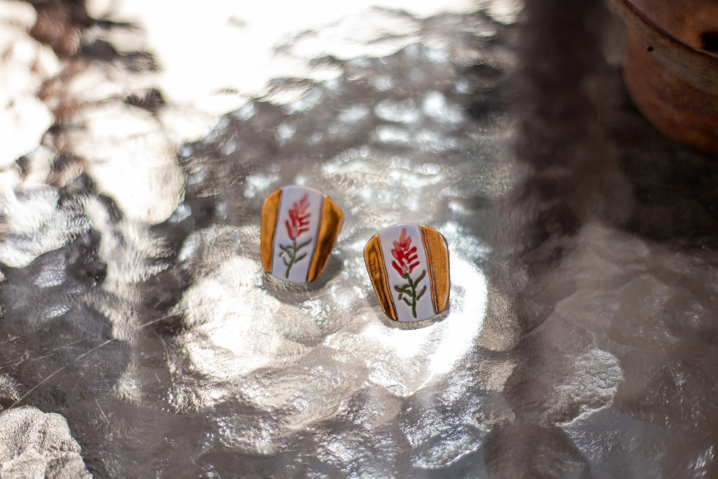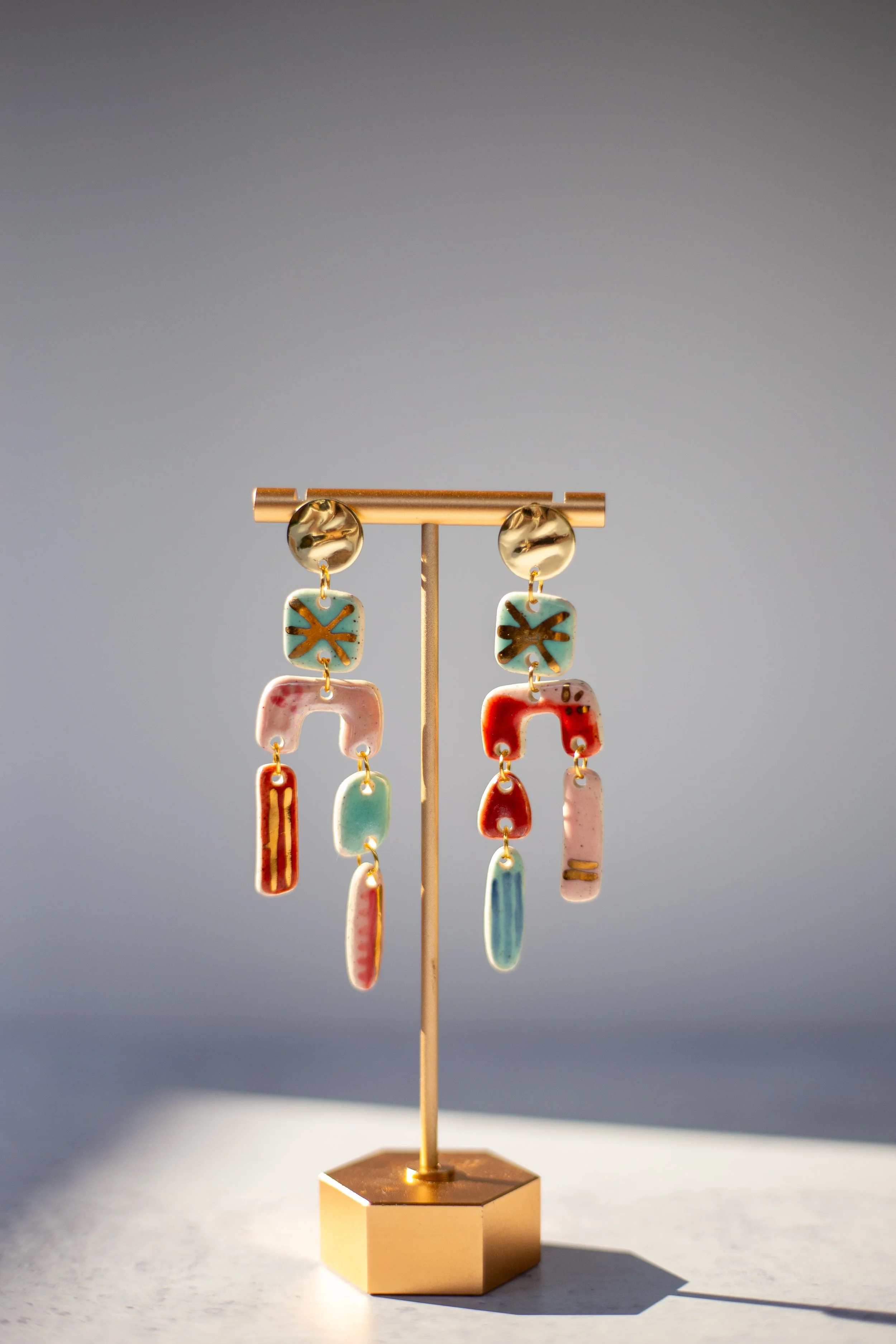 All Shop Neola pieces are handmade ceramic and detailed with luster and 22-karat gold. Each piece uses multiple glazes to create a colorful piece of art for your ears. All pieces undergo many firings in order to complete a complex and charming look that embodies both nature and beauty.